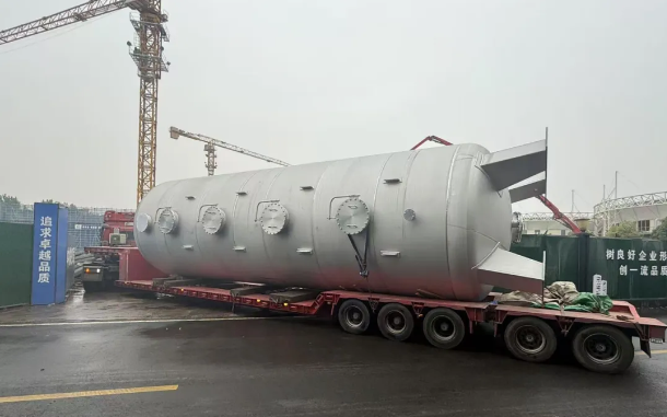4月21日,江濱水處理公司污水深度處理二期工程(第二階段)核心工藝設備——三相催化氧化系統反應器順利運抵項目施工現場并完成吊裝,標志著該工程進入設備安裝階段。
