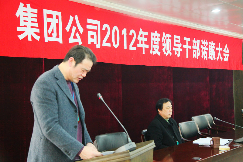 圖為集團(tuán)董事長(zhǎng)倪阿泉向干部職工作廉政承諾