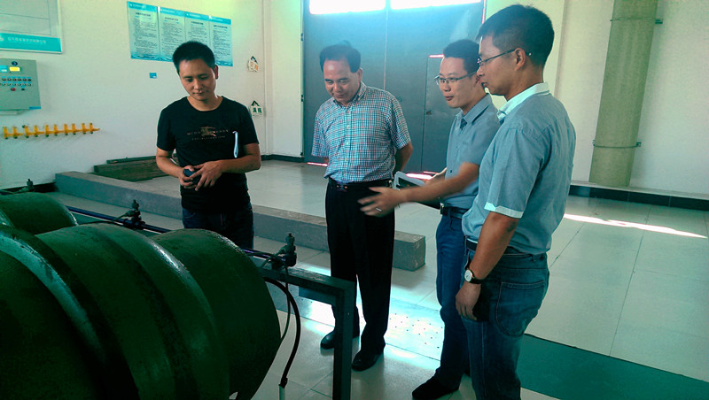 圖為倪阿泉董事長(zhǎng)在供水公司鳳凰山泵站檢查工作