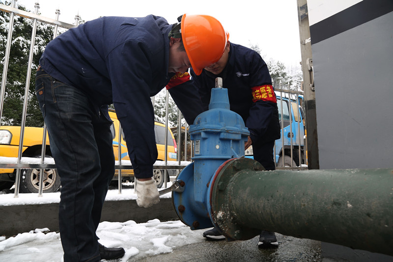 低溫雨雪冰凍天氣來襲前,水務集團未雨綢繆、及早謀劃、多措并舉,全力以赴應對“冰點”。2017 年年初,我們通過“舊管改造、明管保暖、水表加套、地表覆沙” 等方式, 對各類供水設施進行了防凍保暖。2018 年1 月,我們又組織黨員干部、志愿者開展“百人巡管查隱患”活動,通過立管保暖、墻表加套、地表填沙、薄膜覆蓋等方式,分批、分時、分段對1.5 萬余只地