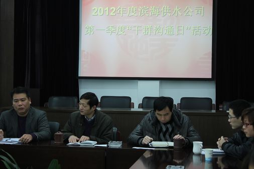 2月22日上午,濱海供水公司在三樓會議室開展了2012年第一季度“干群溝通日”活動,公司領(lǐng)導(dǎo)及職工代表共21人參加。