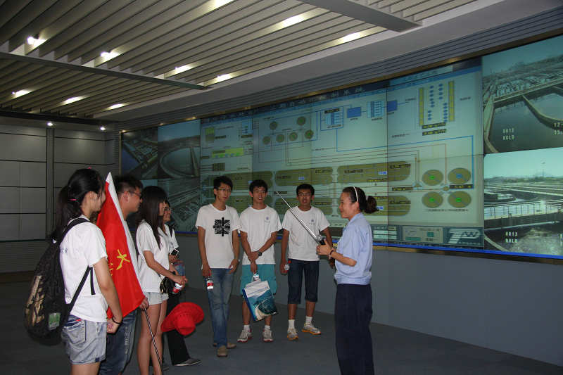 圖為大學(xué)生在中控室聽(tīng)取污水處理情況介紹