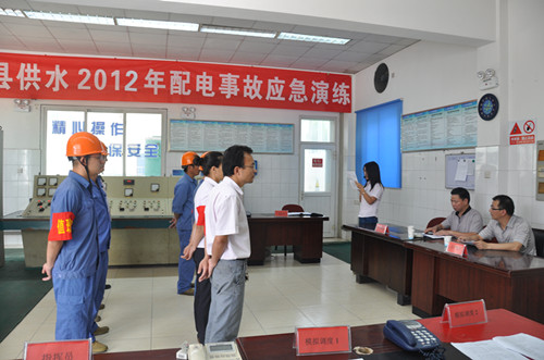 為全面深化安全生產(chǎn)月活動,提高部門職工對突發(fā)事故的分析與應(yīng)急處理能力,確保全縣供水系統(tǒng)安全可靠的運行,6月29日,公司在鳳凰山泵站舉行2012年配電反事故應(yīng)急演練。