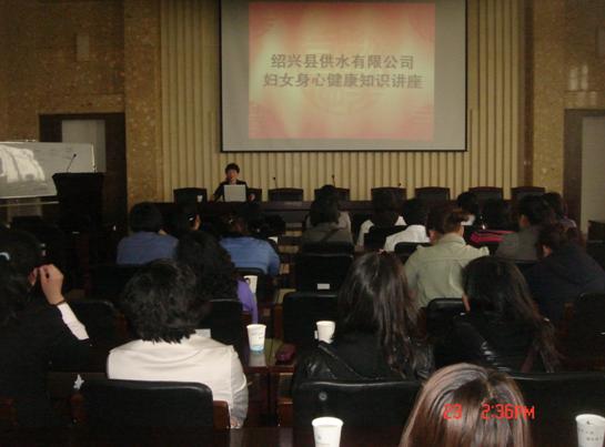 供水公司婦委會關心每位女職工的身心健康。(2010年)四月份邀請到了縣中心醫院婦科主任醫師宋佳來公司作《婦女身心健康知識》講座,50多名女職工聽了講座,并針對自身身體狀況向宋醫師咨詢了解,通過專家的講解使女職工們受益非淺。