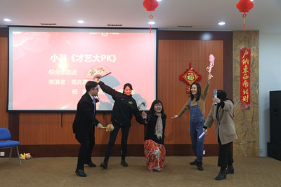 舞臺(tái)上,迎春聯(lián)歡會(huì)節(jié)目形式多樣、亮點(diǎn)紛呈,由各部門(mén)精心選送的小品、歌曲演唱、三句半和樂(lè)器演奏等形式各異的節(jié)目精彩上演。江濱人脫下工裝,盡顯才藝,通過(guò)各桌打分,綜合部選送的小品《才藝PK》獲得最佳節(jié)目獎(jiǎng)。最后公司總經(jīng)理徐冬上臺(tái)致辭,向全體干部員工及家屬致以新春祝福,向奮斗在一線崗位的員工表達(dá)敬意,迎新聯(lián)歡會(huì)圓滿(mǎn)落幕。