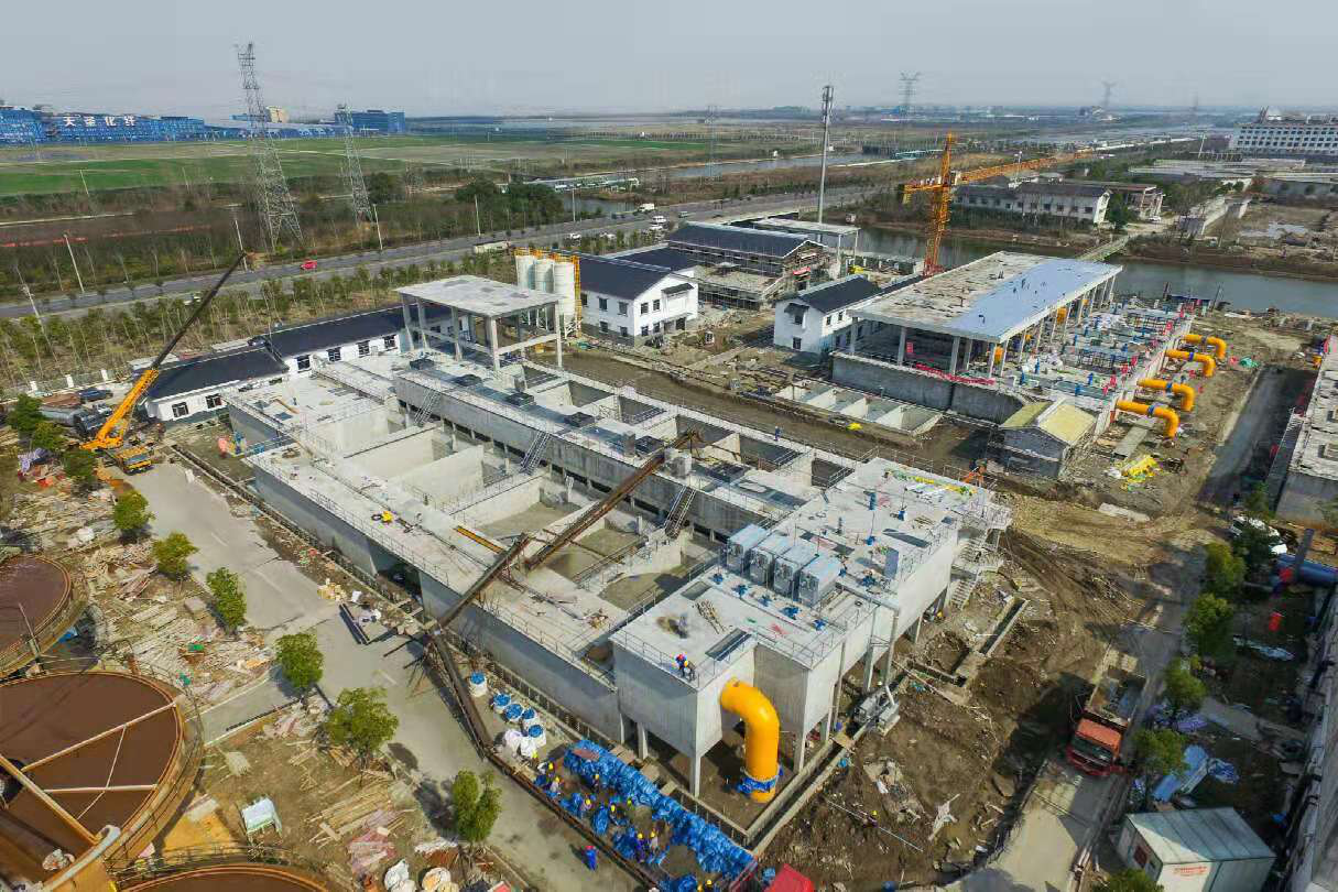 2019年濱海印染產業集聚區已落戶61家印染企業,為進一步增強污水處理系統達標運行的可靠性和出水排放的穩定性2018年9月,污水強化脫氮工程正式動工建設。該工程概算總投資1.85億元,設計處理規模20萬噸/日,建設用地約25畝。主要新建反硝化生物濾池、活性炭投加池、綜合加藥間、高效混凝劑投加系統、出水泵房等項目。其中,濾池采用特殊規格及形狀的陶料濾料作為反硝化生物的掛膜介質,能極好去除總氮,確保污水處理后的總氮達標率保持100%。由于該工程任務重、工期緊,公司針對關鍵節點,細化施工計劃,加強協調管理。通過平行施工、交叉施工等多種方式,于2018年12月底完成土建主體結構施工,2019年 1月中旬完成核心工藝濾池底板工程,確保污水強化脫氮工程與現有系統全方面對接。